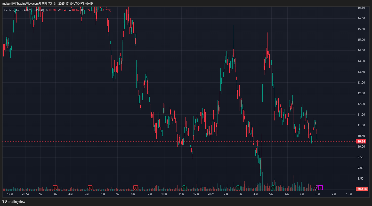 최근에 관심있게 보고 있는 종목은 서타라(Certara: CERT)라는 종목입니다.